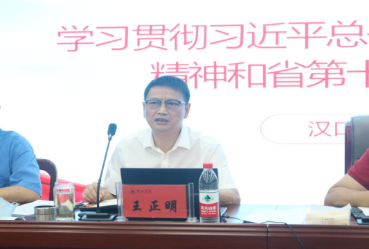 党委书记王正明带领干部员工学习习近平总书记考察湖北重要讲话精神和省第十二次党代会精神。会上,王正明书记强调,要认真学习、深刻领会、全面贯彻习近平重要讲话精神;要全面理解进入新发展阶段、贯彻新发展理念、构建新发展格局的意义和内涵,坚持立德树人的使命,坚持社会主义办学方向,办好人民满意的教育,以优异成绩迎接党的二十大胜利召开。
