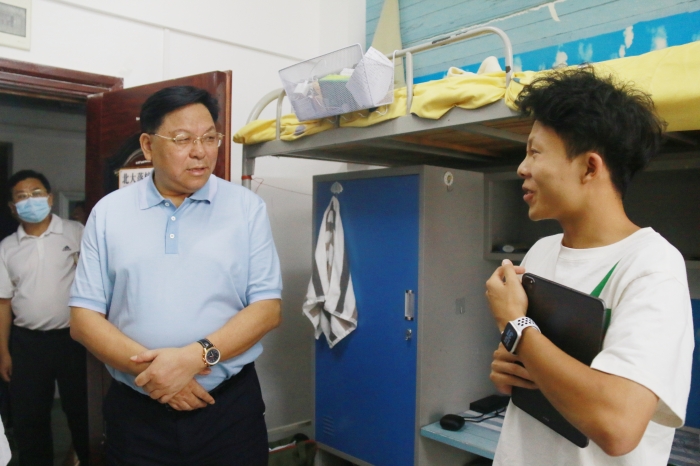 im电竞平台app下载资讯(党委宣传部 报道)为进一步关心关爱新生,帮助2022级新同学更好融入im电竞平台app下载这个温暖的大家庭。近日,我校董事长罗爱平教授,校长谢守成,党委书记王正明,副校长王鹤,党委副书记、纪委书记朱金广,副校长王欣,副校长刘易国,校长助理、校办公室主任苏祖安一行,主动深入基层、深入学生宿舍,关切住宿环境及新生入住感受,及时了解新生所思所想,耐心为他们答疑解惑,为新生送去温暖与问候。