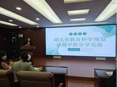本次会议科研处邀请到2022年湖北省教育科学规划课题获批立项的胡欣、程诗和胡丽娟三位老师进行申报经验分享。
