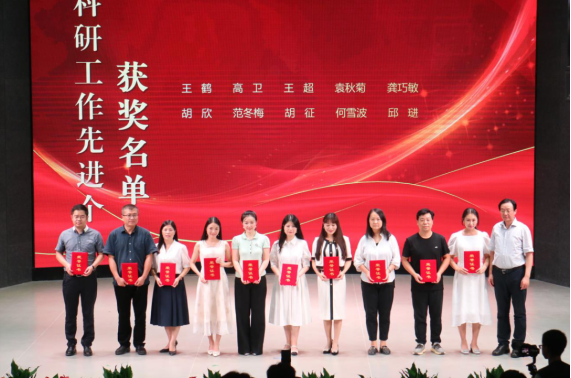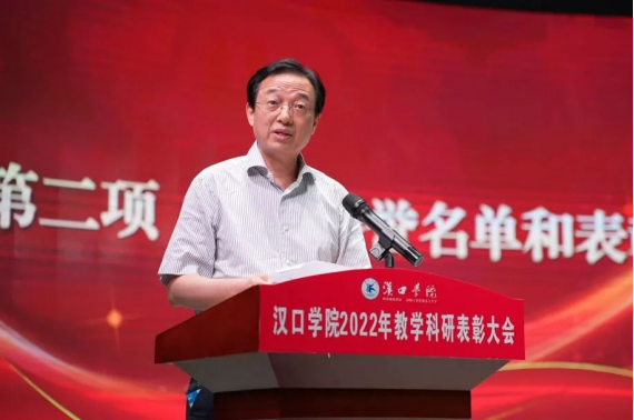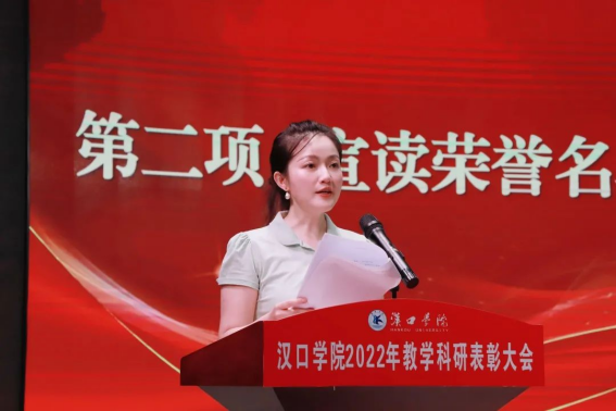 副校长桑建平宣读《关于表彰2021-2022学年课堂教学质量优秀奖获奖教师的决定》和《关于表彰2021年度科研工作先进单位和个人的决定》