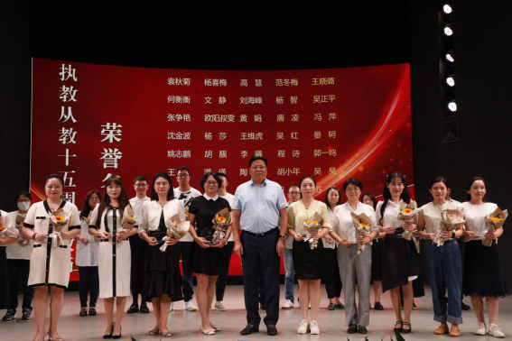 董事长罗爱平教授为执教从教十五周年教师颁发纪念奖章