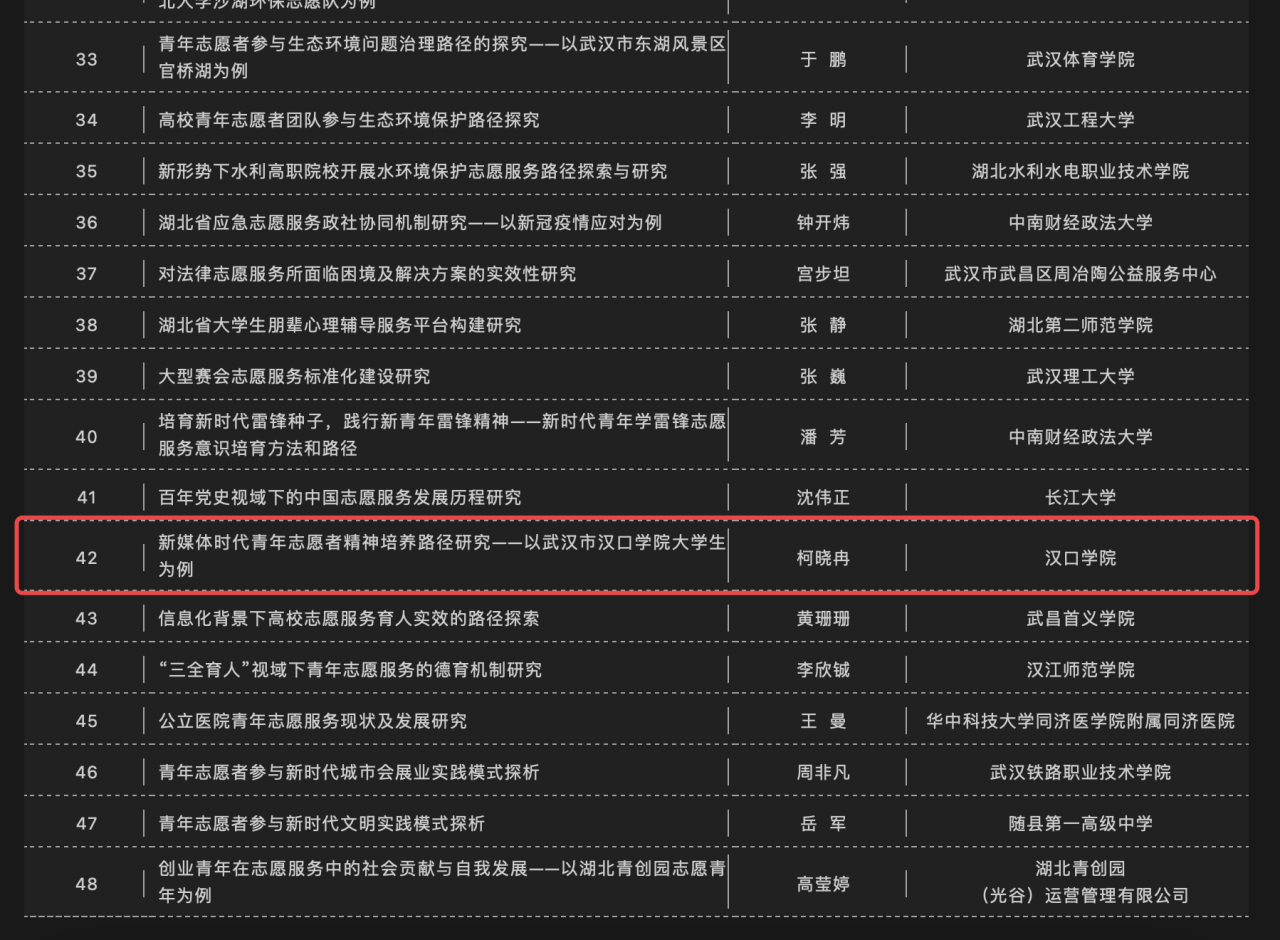 【喜报】我校学子获湖北青年志愿者课题申报一般课题立项