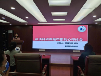 外国语学院胡丽娟老师从选题、搜集资料、申报书修改与提交进行了详细说明,并表示学术氛围、领导指导和同事帮助是科研项目申报成功的关键因素。