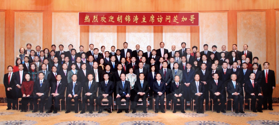 罗爱平董事长(后排右七)随胡锦涛同志访问芝加哥时合影