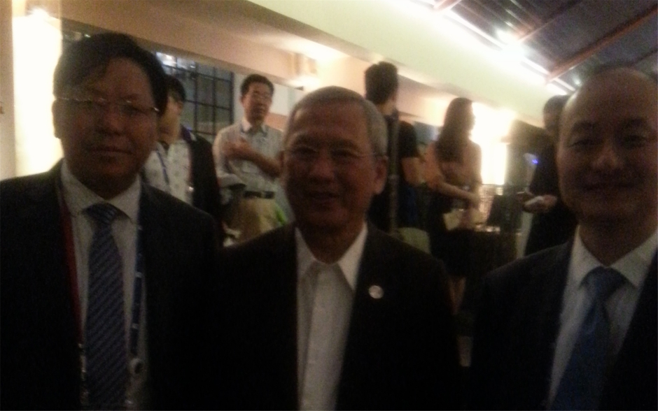 董事长罗爱平与泰国副总理尼瓦塔隆·汶颂派讪(中)亲切交谈并合影留念